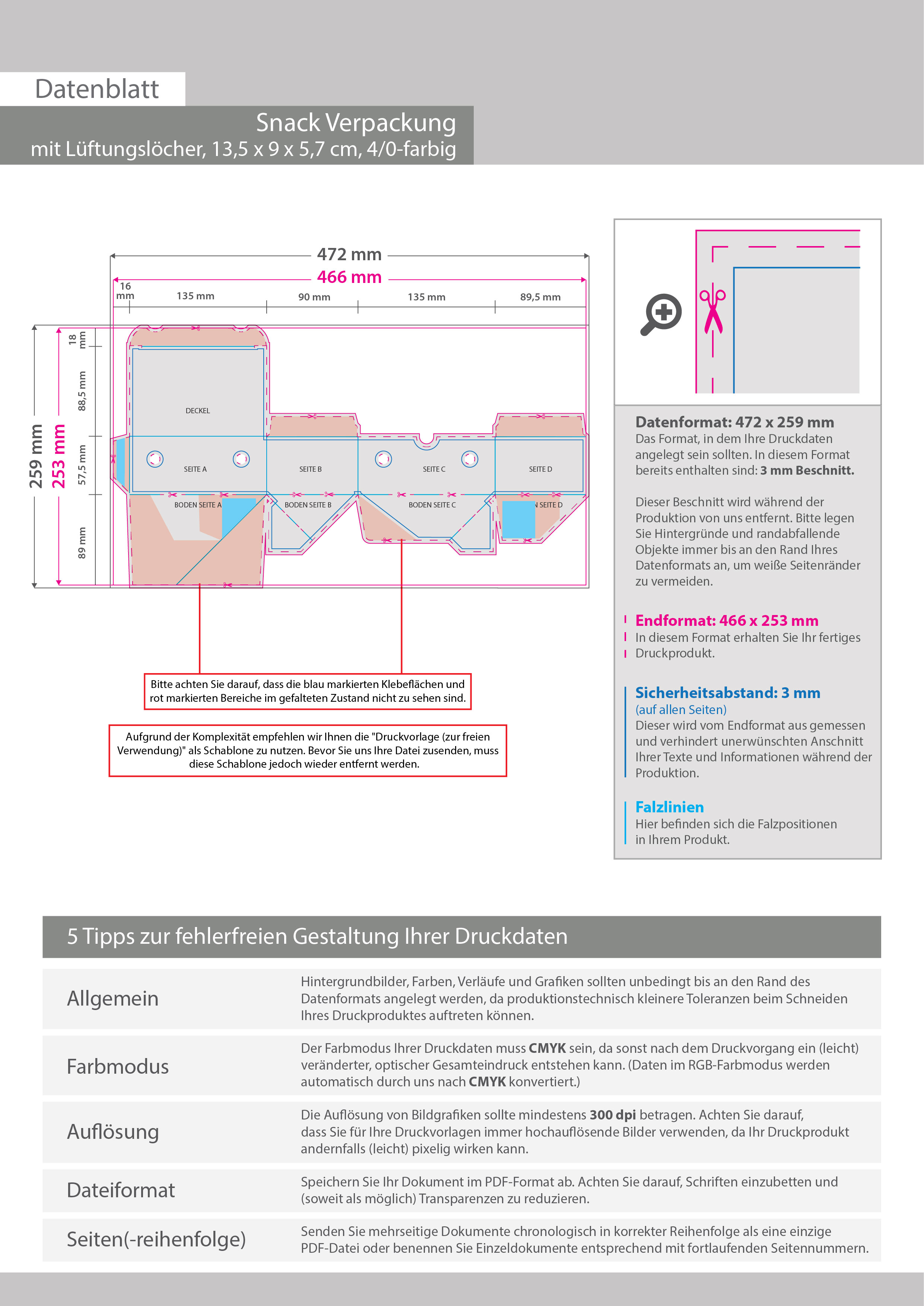 Snack Verpackung mit Lüftungslöchern (13,5 x 9 x 5,7 cm) einseitig bedruckt 4/0-farbig