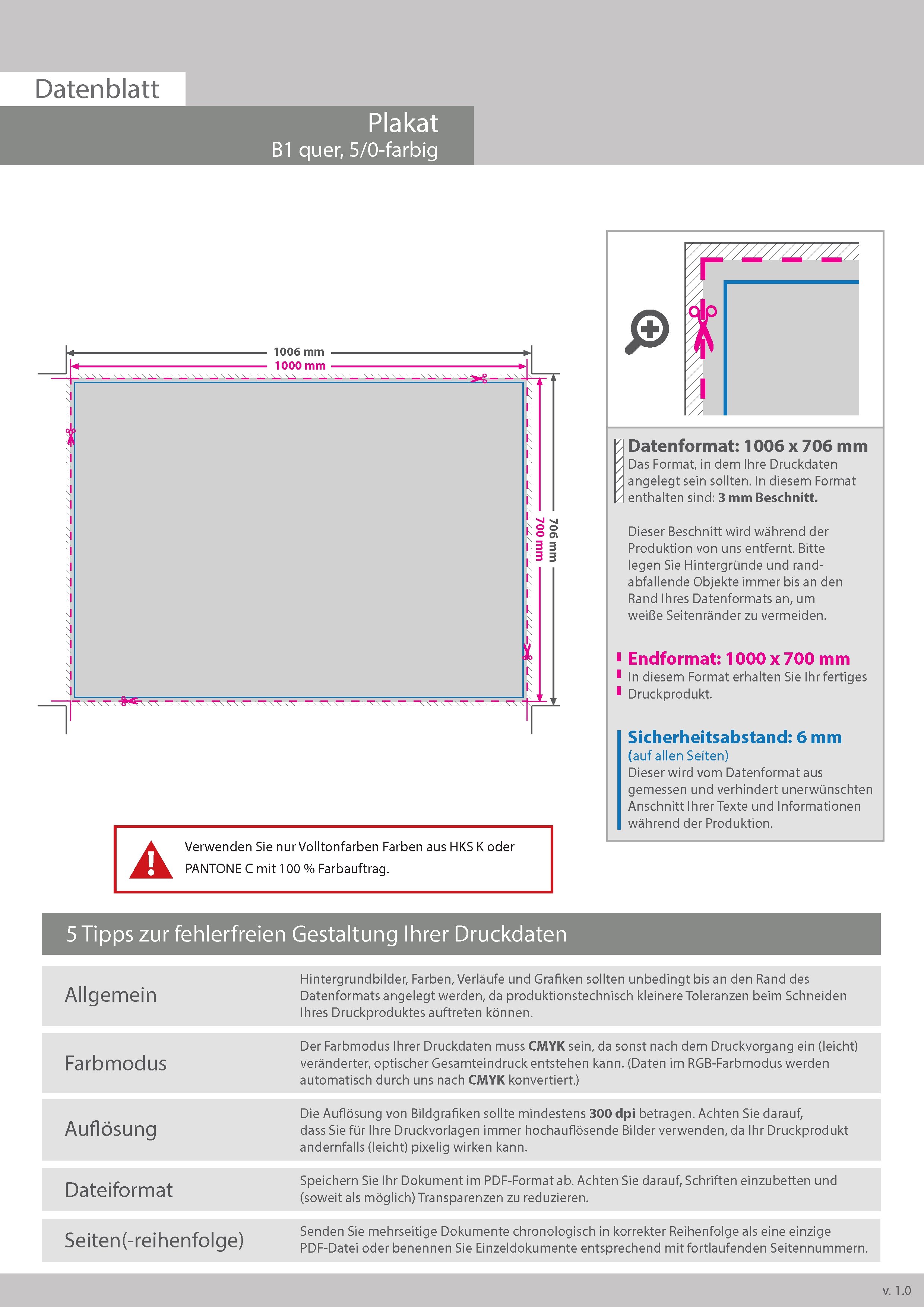 Plakat B1 quer (1000 x 700 mm) einseitig 5/0-farbig bedruckt (CMYK 4-farbig + 1 Sonderfarbe HKS oder Pantone)