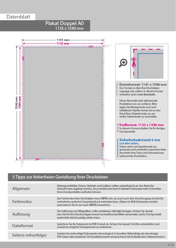 Plakat Doppel-A0 hoch (1135 x 1590 mm) einseitig 4/0-farbig bedruckt (Topseller)