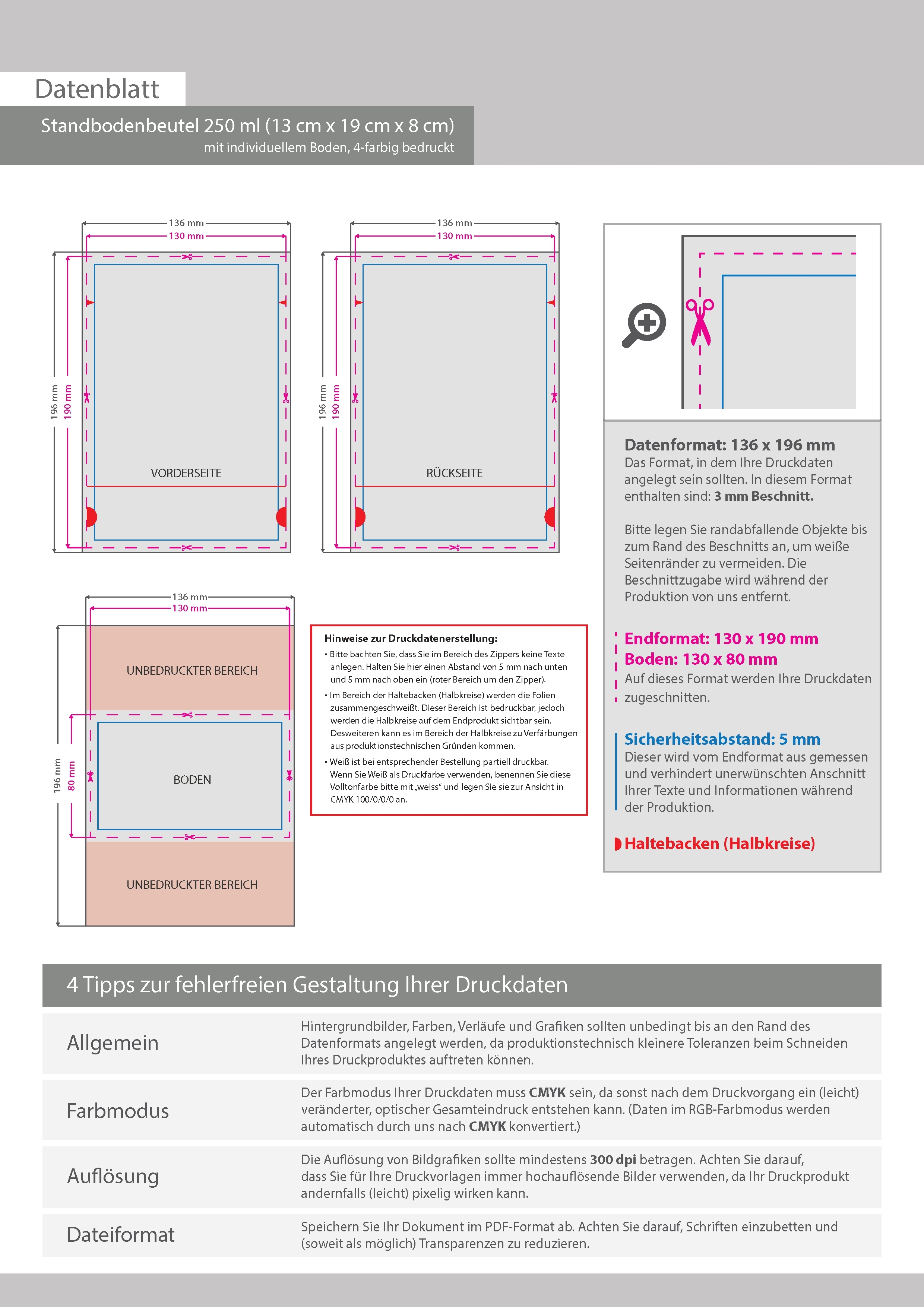 Standbodenbeutel 250 ml (13 cm x 19 cm x 8 cm) mit individuellem Boden, 4-farbig bedruckt